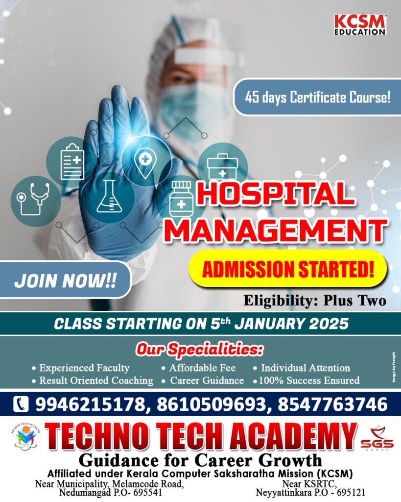 Course Overview: The Certificate Course in Hospital Management is designed to provide comprehensive knowledge and practical skills essential for effective management and administration within healthcare facilities. This course is ideal for individuals aiming to enhance their managerial capabilities or pursue a career in hospital administration.